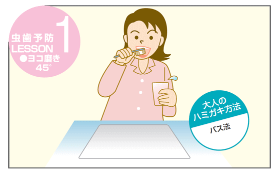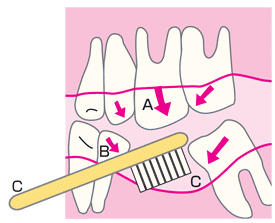 バス法は、浅い歯周ポケットの清掃や歯肉マッサージの効果があります。 |