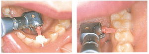 虫歯が歯髄まで達していた場合、感染した歯髄を根の先まで全部除去します。そして歯髄が入っていた管(根管)をリーマーで清掃して細菌を取り除き、薬を詰めます。 |