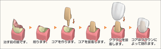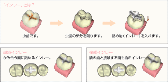 虫歯になった部分を削って、金属、レジン、ポーセレンなどで修復して治療が終わるもの。 |