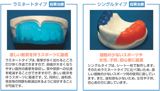 | ●歯科医院で歯型をとり、各自にあったマウスガードを設計・製作する場合 |